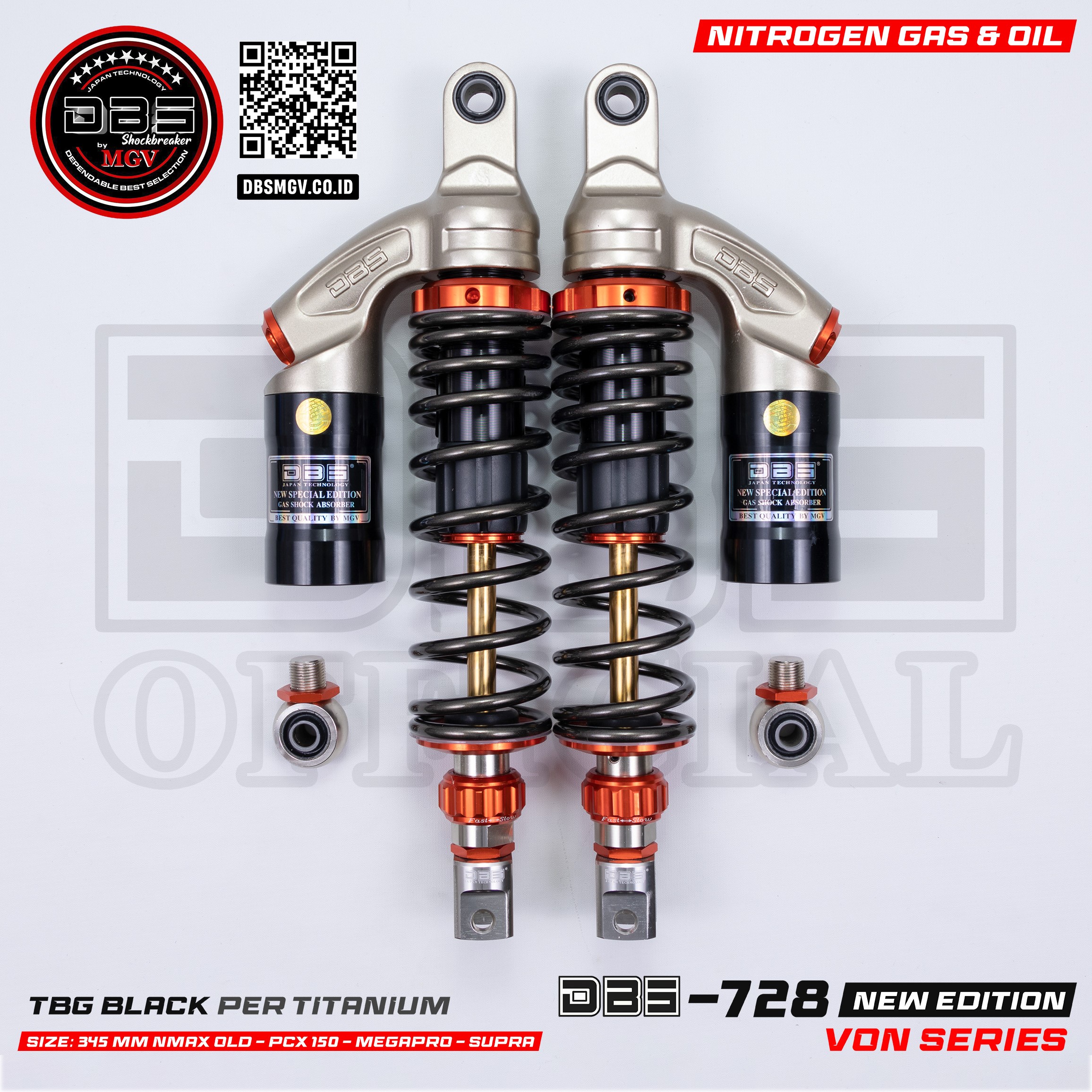 SHOCK DBS VON SERIES-728 NMAX OLD – PCX 150 -AEROX 155 – NMAX NEW/2020, CEPER SKOK BELAKANG SHOCKBREAKER HARGA GROSIR TERMURAH