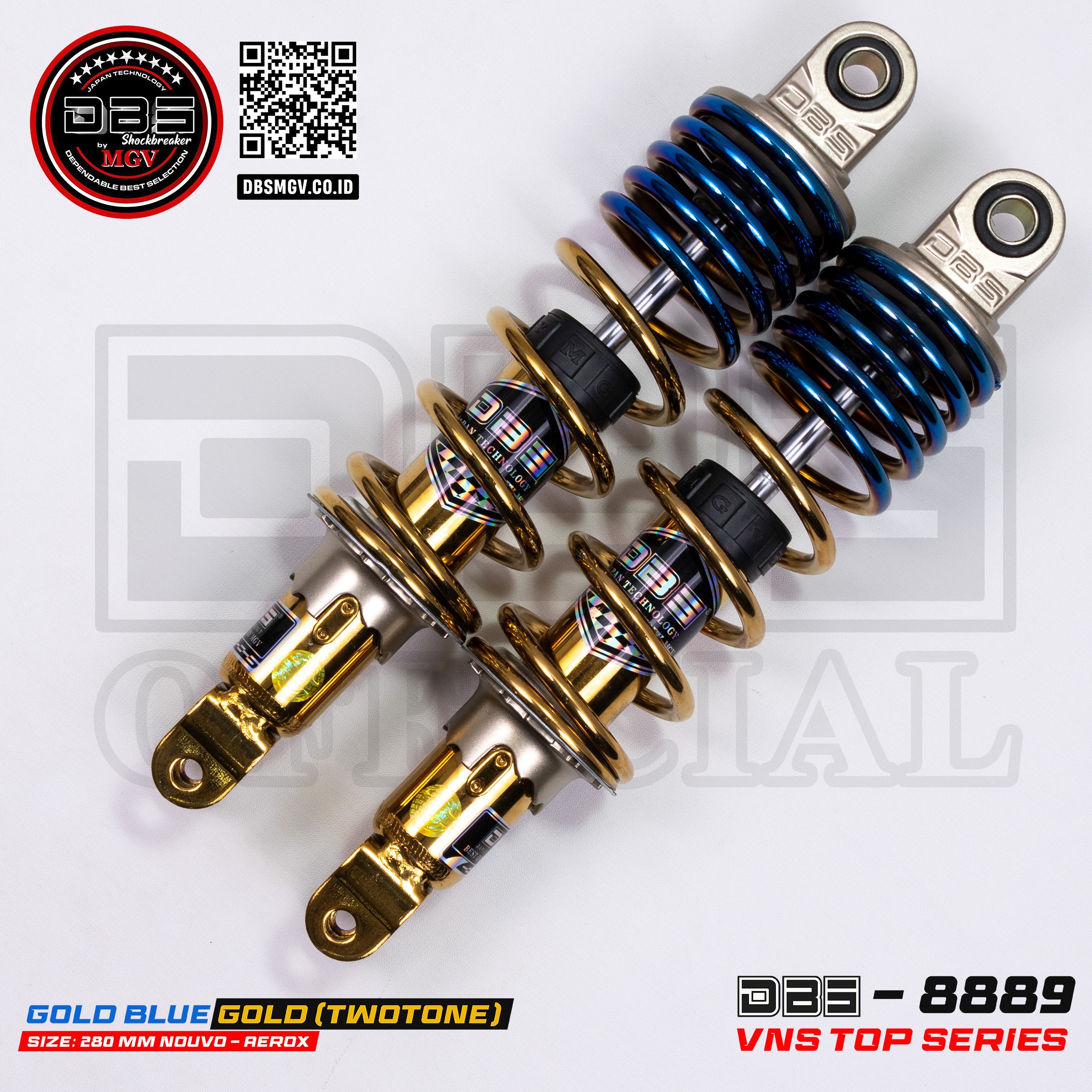 DBS 8889 Top Up Shock Belakang Aerox155 – Nmax New/2020 – Nouvo – Nmax Old – Pcx150 – Nouvo Z 280MM 305MM DAN 345MM